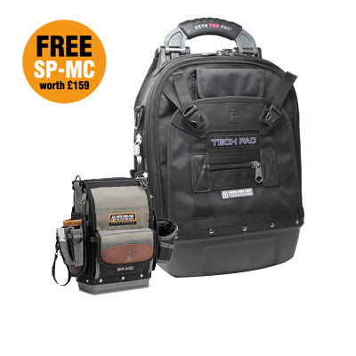 FULL FEATURED SERVICE TECH TOOL BAG WITH WHEELS & RETRACTABLE HANDLE The TECH-LC WHEELER is a rolling version of the tried & true TECH-LC tool bag. Featuring additional volume capacity and Veto Pro Pac’s proprietary V-SWAP™ system, the TECH-LC WHEELER provides a versatile tool storage, organizing and wheeled transport system. While the Tool panel must remain in the bag (on either side of the bag). The bag comes with innovative V-SWAP™ removable Tool (mandatory) and Meter pocket panels to allow for customization. While the Tool panel must remain in the bag (on either side of the bag). the Meter panel is easily swapped out with optional Laptop and Bulk Storage panels, which are available and sold separately.