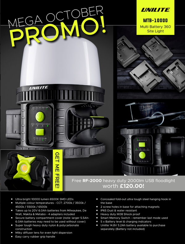 Unilite powerful site lights range in brightness all the way up to 6000 lumens. Making them perfect for work sites of all sizes.
