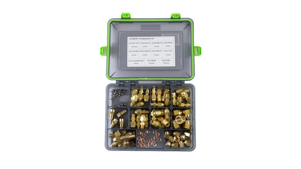 • Dedicated kit for Schrader access fittings and 130 bar CO2