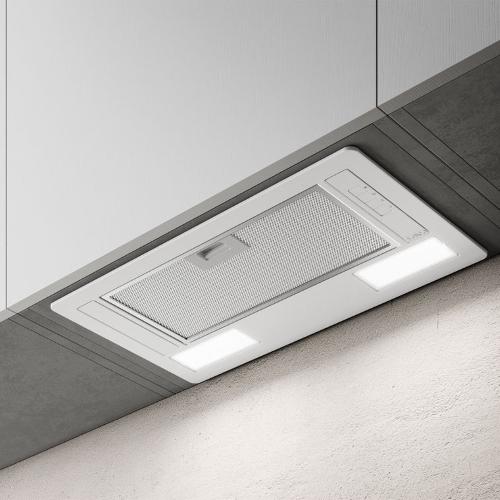 This built in Elica hood is a model of discretion and can be used in a wall unit or chimney breast or alternatively, be built into a false canopy. It is available in 60 or 80cm wide options and a white or stainless steel finish. It can be fitted in either a ducted or recirculating configuration - aluminium grease filters are included and an additional pair of charcoal filters - CFC0038000 - is available for recirculating installations. It features three speeds and push button controls.