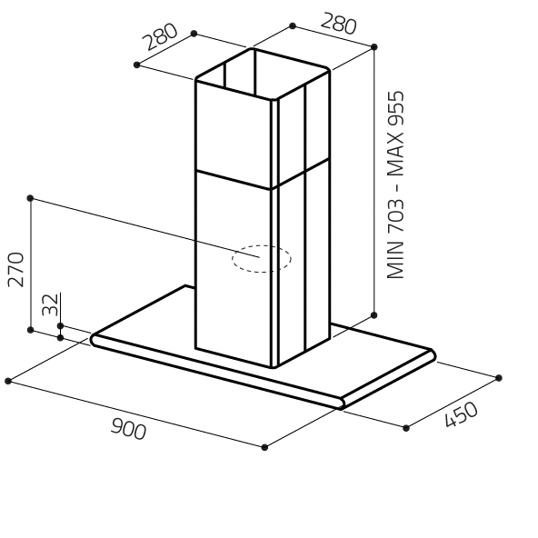 The next generation of chimney hood. The Galaxy is now also available as an Island and is only 45cm deep. Black or white glass control panel with touch control. Duct size 150mm. Charcoal and Long Life Filter optional extras.