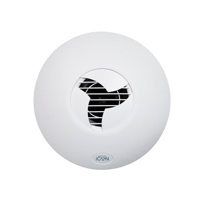 Recessed into the wall or ceiling, it is stylish and unobtrusive, even in the smallest space. Also supplied with a narrow contour 'skirt' for surface mounting if preferred. The quiet, powerful mixed centrifugal/axial fan has been designed with simplicity in mind. A quick, core drilled hole enables immediate fixing of iCON 30. The twist on/off cover requires only a single side entry fixing screw. Cantilever fixing lugs enable recessed installation on uneven surfaces.