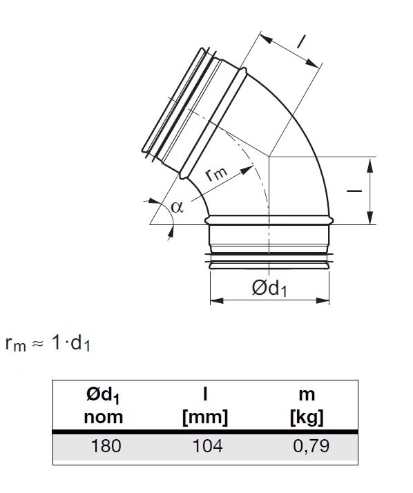 Lindab BU 160mm Pressed galvanised metal 45° Bend Safe