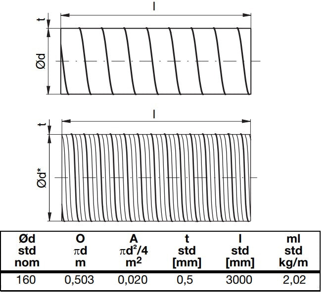 Lindab Circular galvanised metal ducting.160mm 3m spiral
