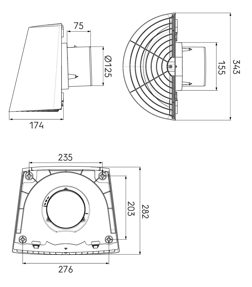 The Contego Wall Terminal is suitable for central mechanical ventilation, handling both supply and extract air via Aerfoam insulated ducts. It prevents water drips, minimizes dirt build-up, and has a bottom grille to block pests. Made of durable, UV-resistant PP, its black-grey matte finish blends with walls. Installation is quick, with a wall-mounted base for easy access and a cap that clips on top.