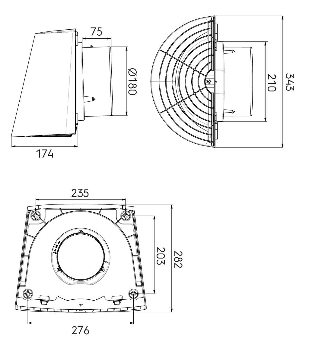 The Contego Wall Terminal is suitable for central mechanical ventilation, handling both supply and extract air via Aerfoam insulated ducts. It prevents water drips, minimizes dirt build-up, and has a bottom grille to block pests. Made of durable, UV-resistant PP, its black-grey matte finish blends with walls. Installation is quick, with a wall-mounted base for easy access and a cap that clips on top.