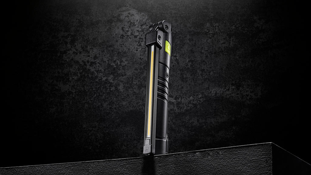 The IL-375R is a versatile folding inspection light designed to provide excellent all-round lighting. It features three separate LED worklights positioned on the front, rear, and top, delivering a total output of 375 lumens. The main COB LED light offers powerful illumination, while the additional LED worklights operate at 250 and 100 lumens, respectively. The light can be folded neatly or extended out 180˚, allowing for flexible positioning during use.