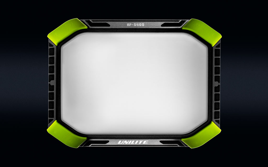 The site light features a 180° adjustable stand/handle with holes for tripod or magnet attachment, providing flexible positioning options. The glare-free milky lens ensures extensive light spread without causing discomfort. With intelligent heat dissipating design, the site light maintains optimal performance during extended use. The RF-5400 incorporates a memory switch that remembers the last mode used and includes a 5-stage battery/charging indicator for convenient monitoring. The site light can be quickly recharged in approximately 3.5 hours using the included 15V 1.5A mains charger with multi-country adaptors. Additional magnet attachment and tripods are available separately to enhance versatility.