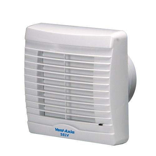 Vent Axia VA 100SVXT 12 Low Voltage SELV bathroom extractor fan with Timer. Model has power on indicator light and can be used in ceiling, wall, window or panel mounting. Low voltage transformer included. 'X' suffix models also have powered electric anti-backdraught shutters