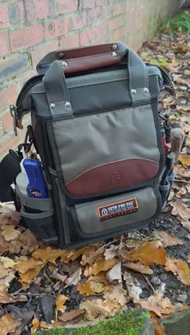 The MB4B is a gate mouth style meter bag enabling quick and easy access to the inside of the bag. Wear the MB4B over both shoulders using the included backpack straps, over a single shoulder via the optional padded shoulder strap (sold separately), or at your side with the leather-gripped handles. The MB4B comes with the Padded Insert Box. The divider inside the removable padded insert box can be repositioned to secure and separate a meter from other tools; three internal pockets enable further partitioning of tools, and the MB4B features 11 exterior pockets on the side and front as well as a padded tablet computer pocket on the back.