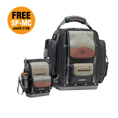 The MB5B Tool Bag is an extra large and highly-configurable front accessed tool and meter bag. Once the bag is loaded out, it can be worn over both shoulders using the included backpack straps, over a single shoulder using the optional padded shoulder strap (sold separately), or at your side with over-molded gripped handle. The bag features an additional 8 pockets on the front flap as well as a padded tablet computer pocket on the back. The MB5B is offered in two configurations: MB5B Tool Bag for technicians in the United States and MB5B Tester Bag that accomodates a Multifunction Tester (MFT) for technicians in the UK, Europe and the rest of the international professional trade community. The MB5B Tool Bag is the United States version shown here and has been configured for storing a variety of hand tools inside the bag while separately storing 1-2 clamp meters in the 2 padded side mounted zippered pockets each of which will securely fit meters up to 10”/26cm/260mm x 3.5”/9cm/ 90mm x 2”/50mm.