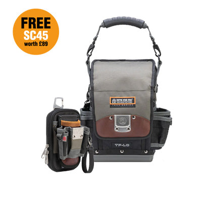The TP-LC is a one-sided, closable, compact-sized tool pouch that holds a variety of tools, meters, fasteners & wire nuts. The exterior pockets include a weather resistant rear storage area ideal for sensitive probes. The zippered cover of the TP-LC provides greater weather & dust protection for techs needing a compact bag for service calls requiring just the minimum amount of tools.