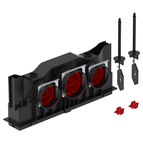 This cleanable, rectangular slot diffuser housing is suitable for installation in all types of wall/ceiling including within concrete and comes complete with locking slides and end caps. It is designed for use with the 988321646 fixing bracket when mounting within a wall/ceiling void. The rectangular lamina/bilamina slot diffuser can also be used with the 20/40mm extension pins (990320687/990320688/990320699) and offer adjustable directional air supply. It can also be used with the 990322010 90mm to 75mm reducer to convert to a 3 port 75mm housing. 182mm high x 439mm wide x 115.4mm deep.